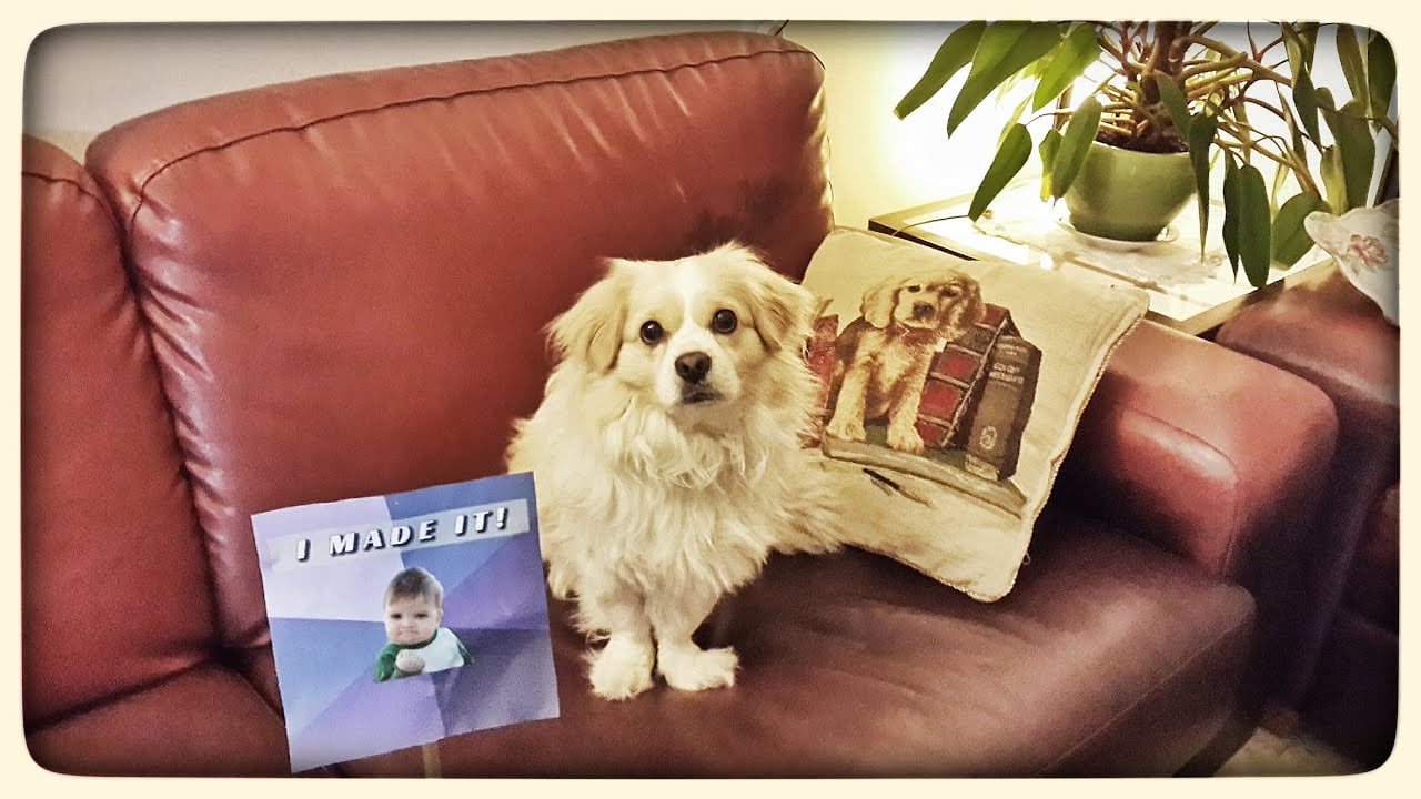 Superdog flying to the couch